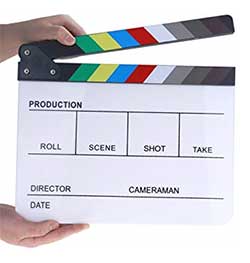 Whatever you shoot will wind up in front of an editor, so to make it a little easier in post (especially if you have an extra camera rolling), the clapper will help sync things up – and each of the 5 memory cards we provide is numbered, so if you're working off of a pre-prepared shot-list w/numbered scenes, this can be an easy way to let your editor to locate any particular scene or take.
