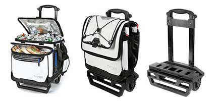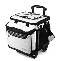 No need for any long description for this device, because any PA should be able to wrangle it properly. It's an Arctic Zone Titan Deep Freeze 60 Can Rolling Cooler with a wheeled Cart. It's Deep Freeze high performance insulation with radiant heat barrier reflects heat rather than absorbing it and also includes an insulated, expandable front compartment and a Triple layer ColdBlock base has 3 thick layers of SuperFoam designed to keep the conductive heat from the hot ground.